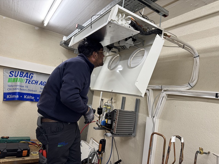 Installiert wurden drei 2-Split-Klimasysteme mit je 4,5 kW, optimal abgestimmt auf Büros, Empfang und Sitzungsraum. Die Geräte sorgen heute für konstante Temperaturen, ohne Zugluft und ohne störende Geräusche. Die Umsetzung erfolgte durch das eingespielte Vierer-Team aus Härkingen innerhalb von drei Arbeitstagen. Trotz anspruchsvoller Platzverhältnisse in der Stadt konnte das Projekt dank sorgfältiger Planung reibungslos realisiert werden. Das Aussengerät wurde geschützt in einem Innenhof montiert. Das Ergebnis spürten wir bereits am Schluss: spürbar besseres Raumklima, ruhiger Betrieb und ideale Bedingungen für produktives Arbeiten.